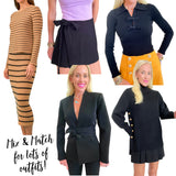 Skirt: Length of Small = 33.8” / Waist Width of Small = 27”
