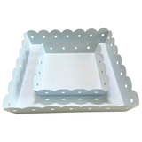 Set of TWO White, Green, Pink or Blue Enameled Tin Scalloped Trays (15” & 9”)