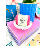 Includes: phone stand, ear bud cleaner, webcam cover, password cheat sheet, 2 in 1 charging cable, cord organizer, screen cleaner, USB wall charger