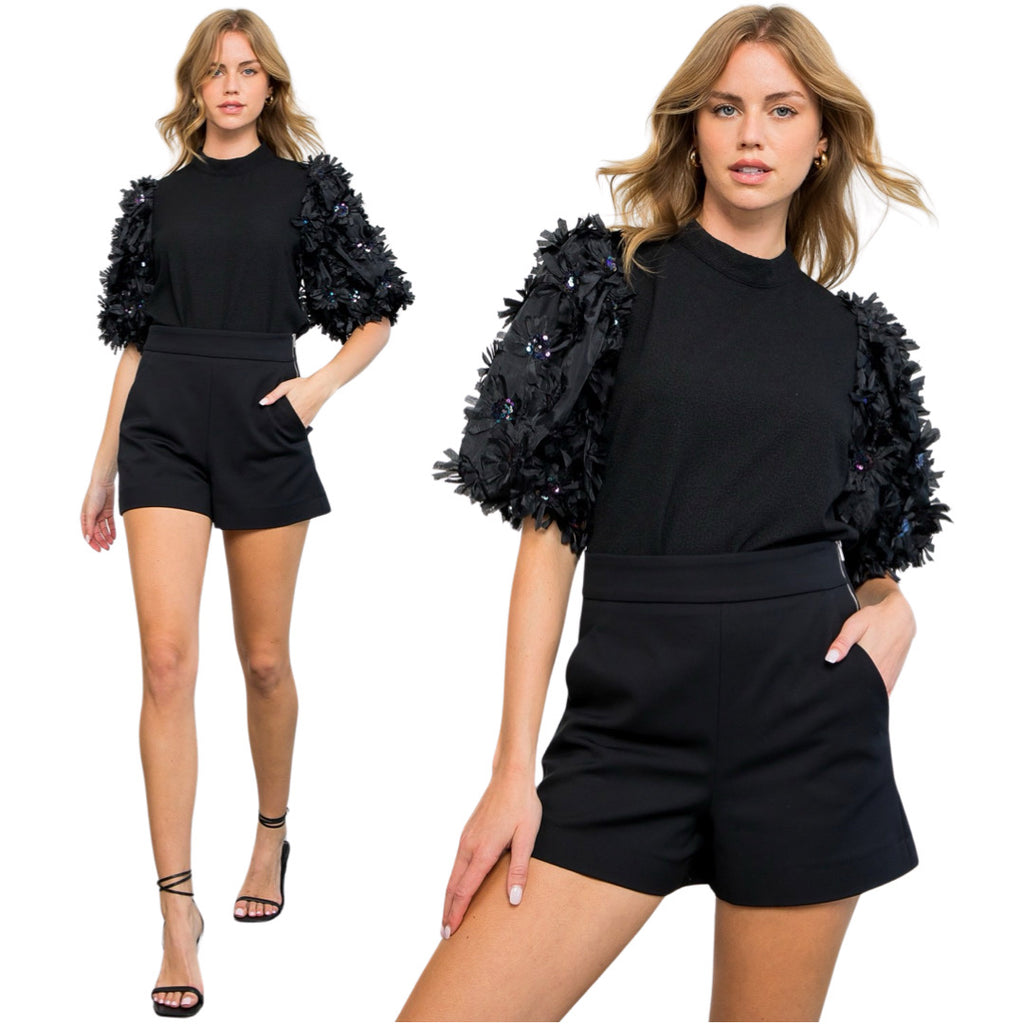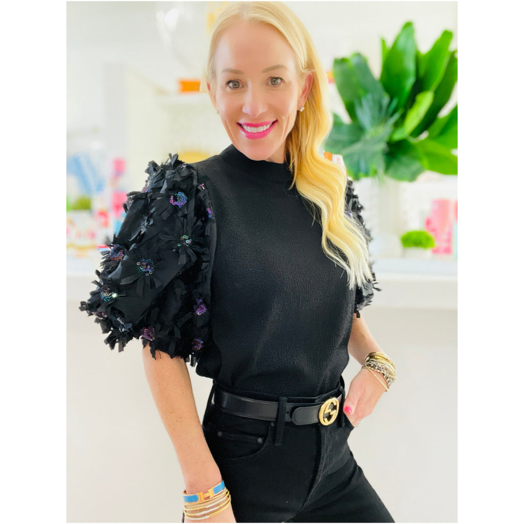 Puff Sleeves with Florals & Subtle Sequin Middle
