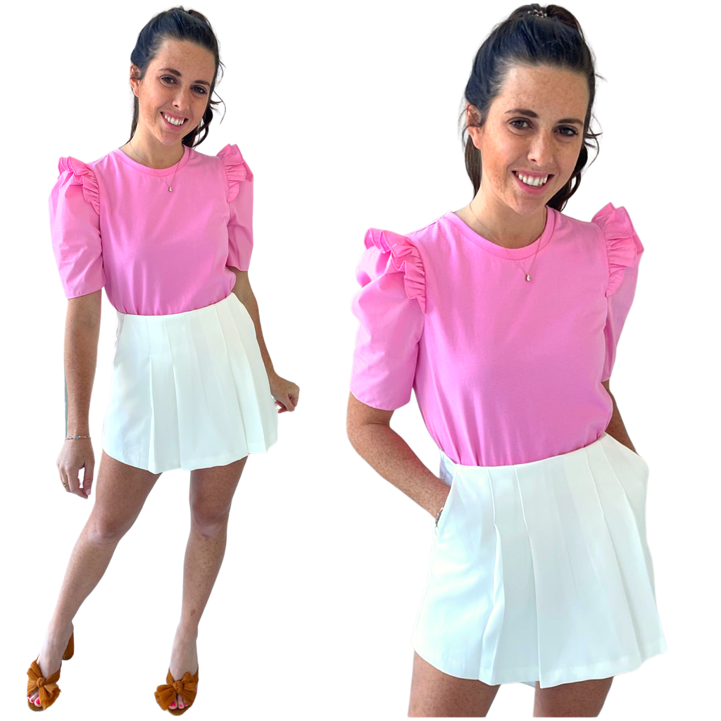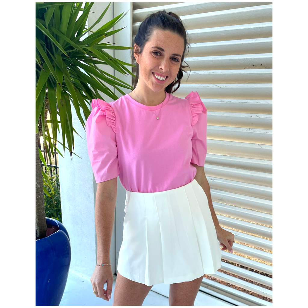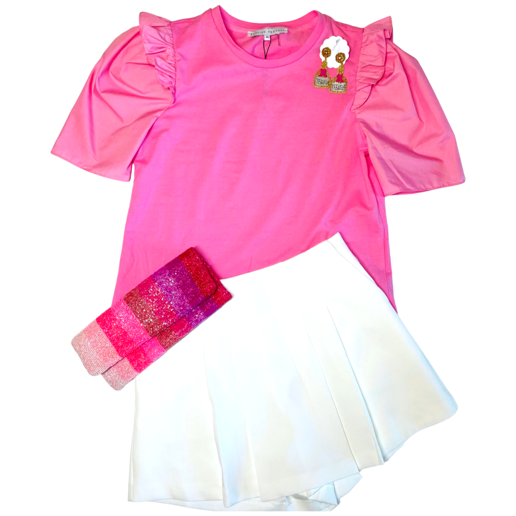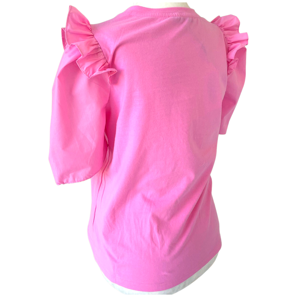 Bubblegum Pink Poplin + Cotton Knit Contrast Ruffled Mimi Top