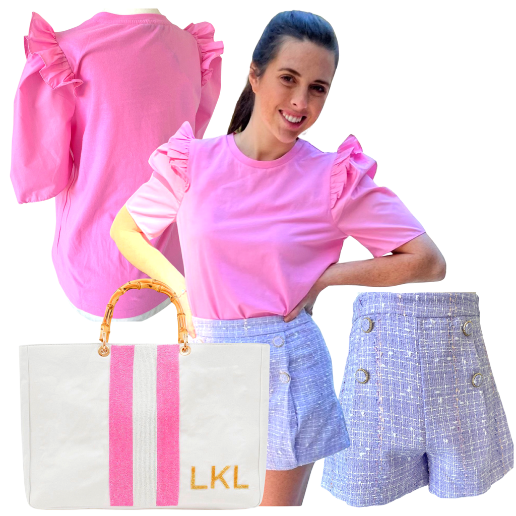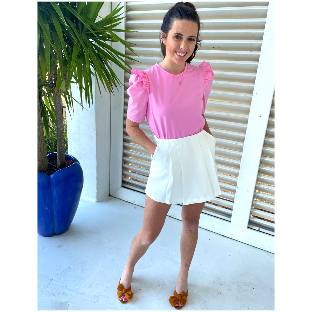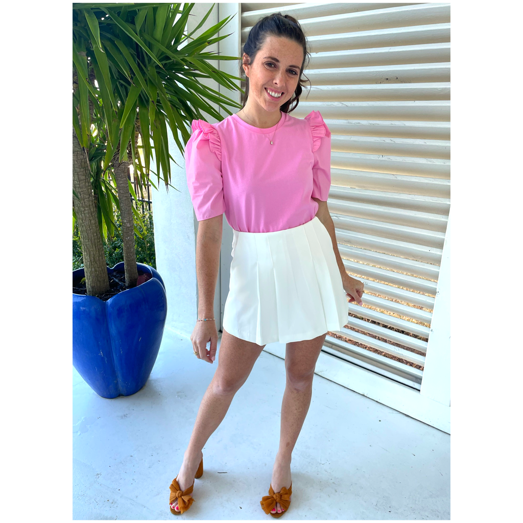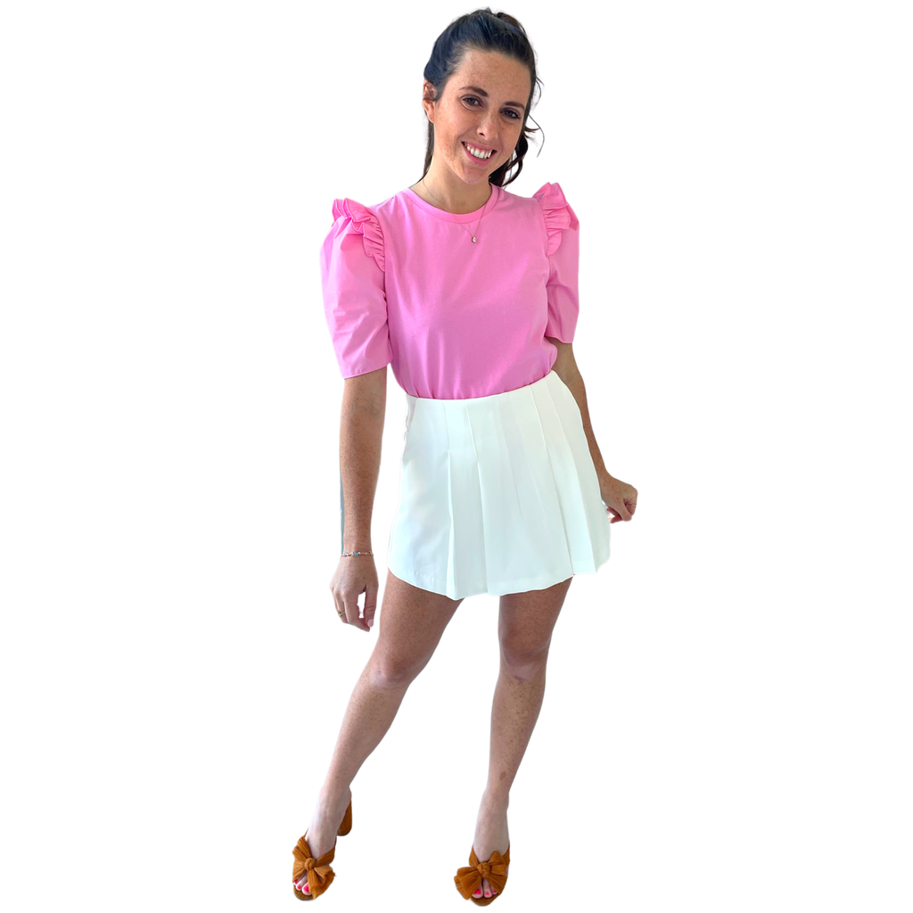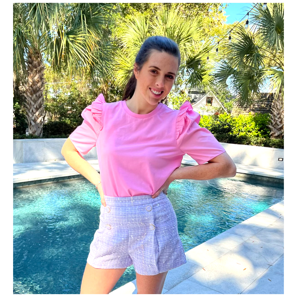 Bubblegum Pink Poplin + Cotton Knit Contrast Ruffled Mimi Top