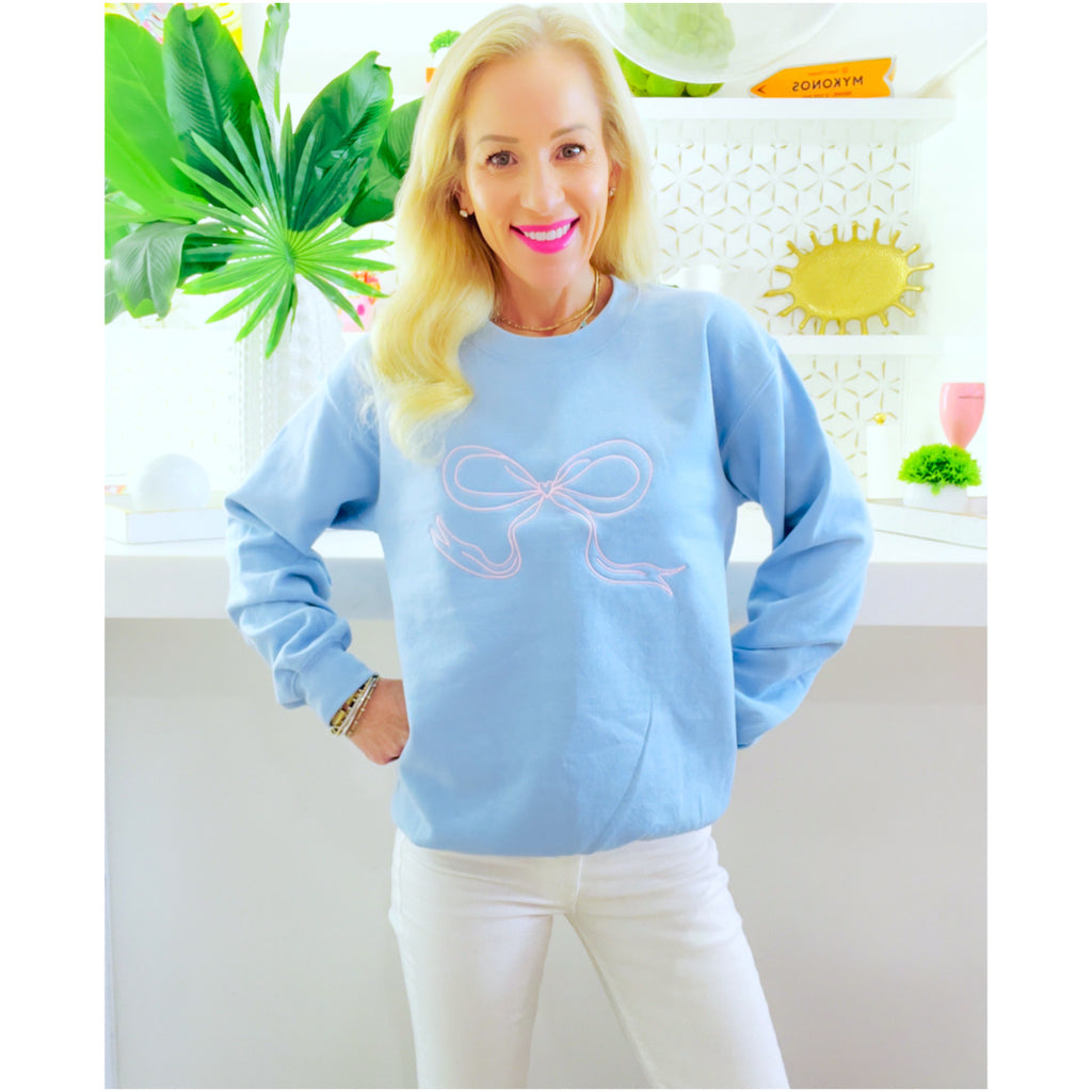 Blue & Pink Embroidered Bow with Heart Sweatshirt