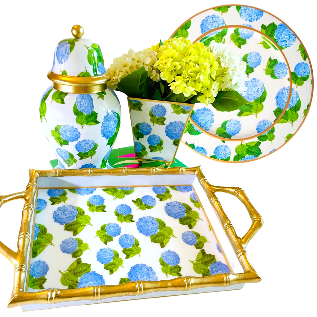 Hydrangea Summer Cachepot, Ginger Jar & Tray