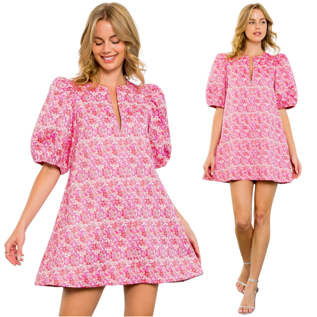Pink Puff Sleeve Annabelle Dress