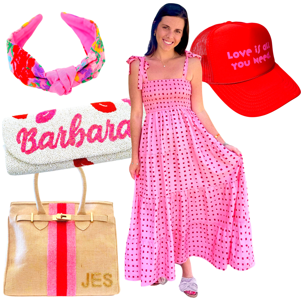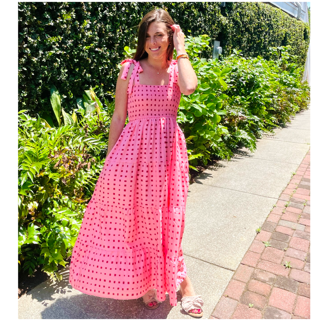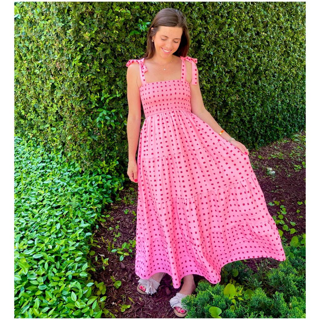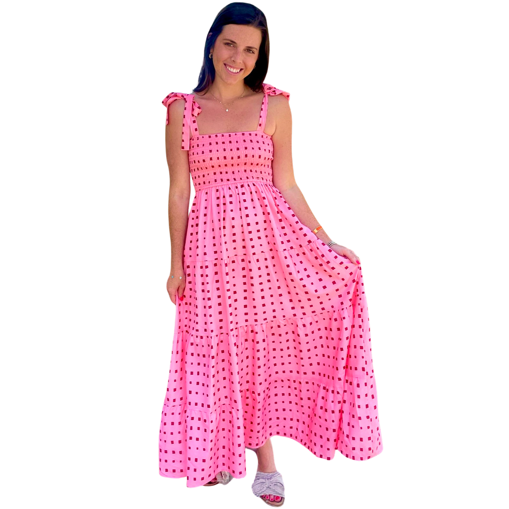 Pink & Red Smocked Tie Shoulder Blythe Dress with POCKETS